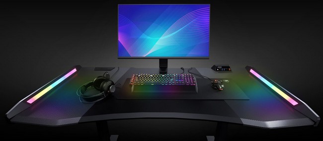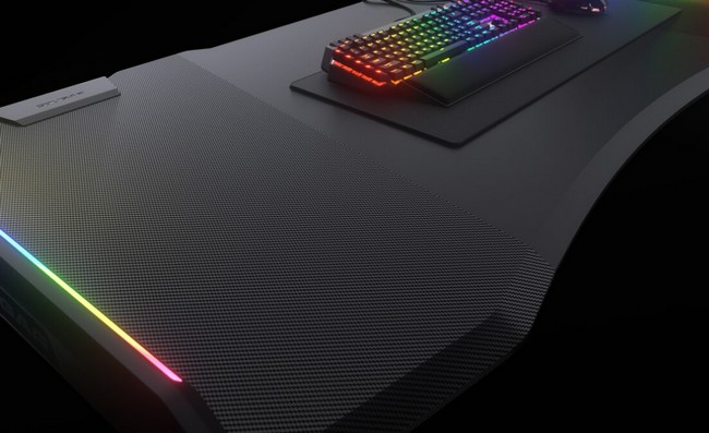 На просторій ігровій поверхні шириною до 150 см з текстурою з вуглецевого волокна достатньо місця для ігрових моніторів, ігрових клавіатур і іншого ігрового обладнання. Високоергономічний дизайн - вигнуті краї та закруглені кути - забезпечує більш комфортний ігровий процес.