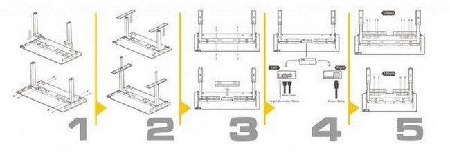 - Попередньо зібраний каркас столу: 2-рівневі стійки і рама з подвійними двигунами