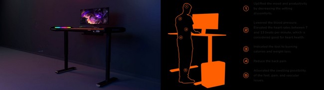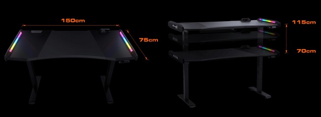 COUGAR E-MARS використовує електричні та моторизовані елементи для досягнення максимальної ергономіки. Можливість регулювання висоти знижує тиск на нижню частину спини та забезпечує комфорт під час довгих ігрових сесій. Просторий робочий стіл із яскравими RGB-ефектами створює захопливу ігрову атмосферу. COUGAR E-MARS - це не просто ігровий стіл, це обладнання мрії для всіх поколінь!