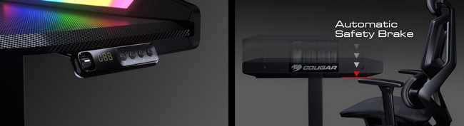 - Автоматичне запобіжне гальмо при аварійному зіткненні. Ми зазначили, що COUGAR E-MARS – це більше, ніж просто ігровий стіл; це життєво важливий предмет домашніх меблів. Він оснащений автоматичним запобіжним гальмом на випадок несподіваної перешкоди на шляху або у разі сильної тряски при зміні висоти.
