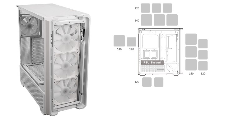 Не дозволяйте перегріву вивести вас із гри: MX600 охолоджує ваше обладнання там, де воно працює з максимальною інтенсивністю. Корпус має можливість встановлення до 9 вентиляторів повітряного охолодження. Три 140-мм вентилятори з PWM-керуванням попередньо встановлено.