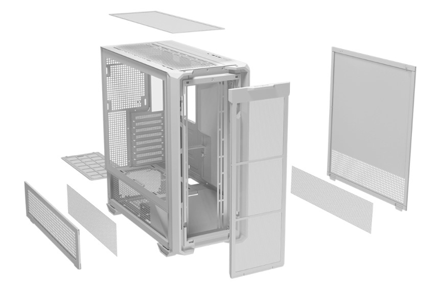 П'ять грамотно розташованих фільтрів захищають ваші дорогоцінні компоненти від потрапляння пилу. Зокрема, доступ до швидкознімного переднього фільтра можна отримати, не знімаючи передню панель, що зводить до мінімуму контакт із частинками в повітрі під час технічного обслуговування. Комплексна фільтрація знизу, зверху, збоку і спереду гарантує чистоту вашого обладнання, скорочує потребу в обслуговуванні та подовжує термін служби вашого ПК.