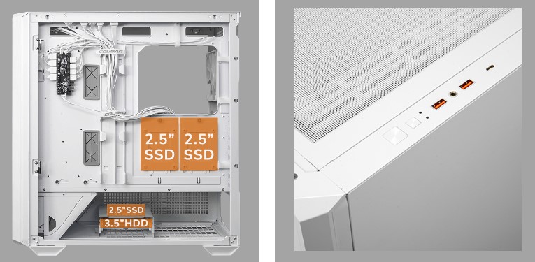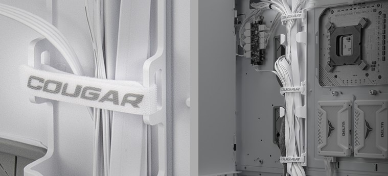 Преміальна конструкція для прокладання кабелів містить напрямні для прокладання кабелів і сім ременів на липучці для фіксації кабелів. Лаконічна кришка приховує все від очей, спрощує організацію і забезпечує бездоганний вигляд вашої збірки.