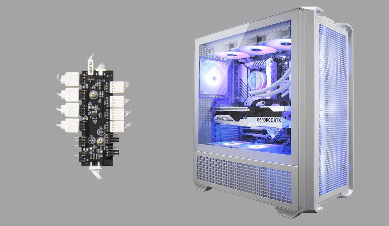 MX600 RGB оснащений вбудованим концентратором, який забезпечує плавну координацію швидкості обертання вентиляторів із PWM і RGB-підсвічуванням. Це дає вам змогу керувати RGB-підсвічуванням без необхідності використання програмного забезпечення або синхронізувати її з програмним забезпеченням материнської плати.