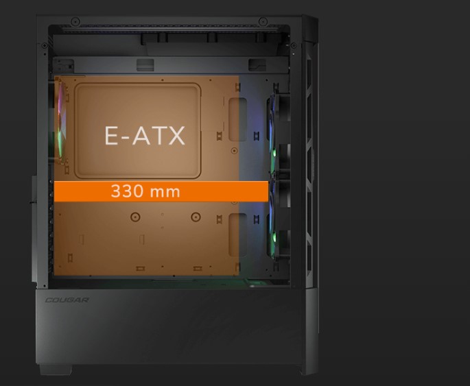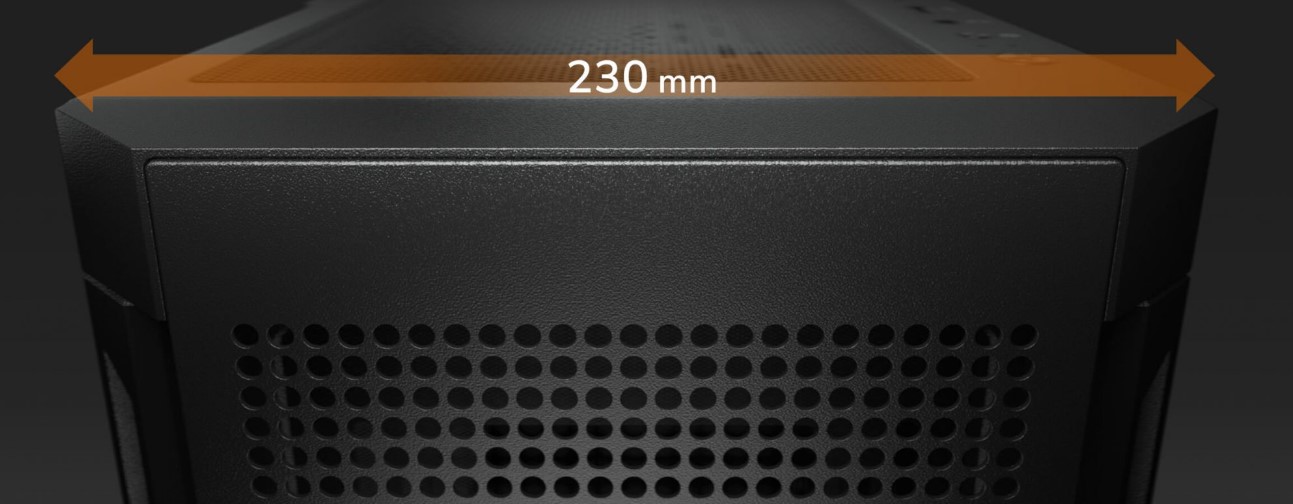Корпус Airface шириною 230 мм дозволяє значно збільшити внутрішній простір, підвищити ефективність охолодження та організувати кабелі. У нього легко помістяться материнська плата E-ATX, графічна карта 330 мм, два 3.5-дюймові жорсткі диски і два 2.5-дюймові твердотільні накопичувачі, що дозволяє створювати найпотужніші збірки системи.
