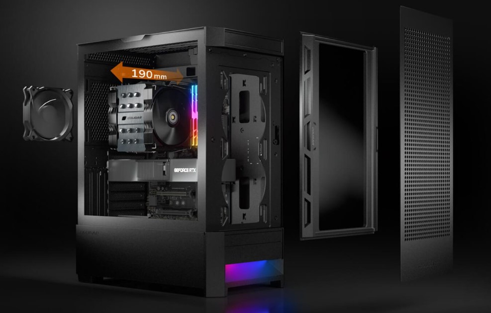 Внутрішній простір Airface підтримує до п'яти вентиляторів, 280-мм радіатор водяного охолодження та процесорний кулер заввишки 190 мм. Цей величезний потенціал охолодження запобігає перегріву критично важливих компонентів.