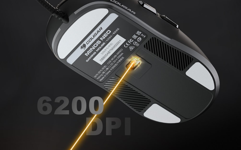 Оснащена оптичним сенсором PixArt PAW 3327, Minos NEO забезпечує точне відстеження та виняткову точність при роздільній здатності 6200 DPI.