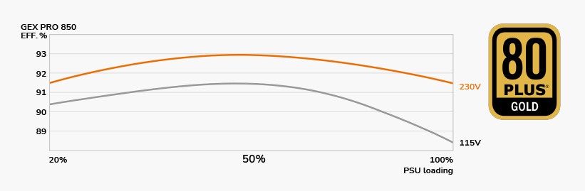 Серія GEX PRO відрізняється високоефективною конструкцією, яка перевершує стандарт 80 PLUS Gold, що допоможе вам заощадити гроші на рахунках за електроенергію.