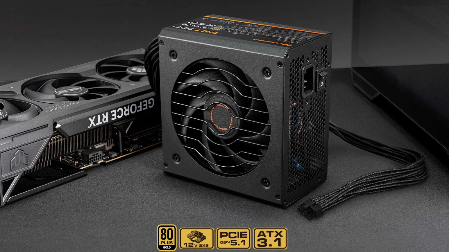 Серія COUGAR GST може похвалитися високоякісною сертифікацією 80 PLUS Gold, що гарантує надійну подачу живлення навіть за умов 40°C. Маючи власну конструкцію роз'єму PCIe 12V-2X6, цей немодульний блок живлення відповідає найновішим стандартам Intel ATX 3.1 та PCIe 5.1. Блок живлення ефективно живить відеокарти наступного покоління за допомогою одного кабелю з контактами 12+4 досягаючи ефективності перетворення до 91%. Він не тільки заощаджує енергію та знижує витрати на електрику, а й забезпечує стабільне живлення всіх компонентів.