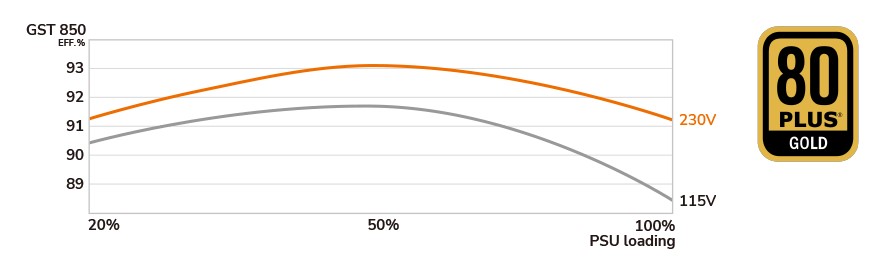 Серія GST відрізняється високоефективною конструкцією, яка перевершує стандарт 80 PLUS Gold, що допоможе вам заощадити гроші на рахунках за електроенергію.