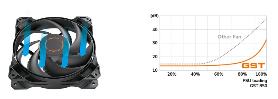 Завдяки ексклюзивному 120-міліметровому HDB-вентилятору COUGAR з удосконаленою конструкцією лопатей вентилятора підвищує плавність повітряного потоку та оптимізує безшумну роботу.