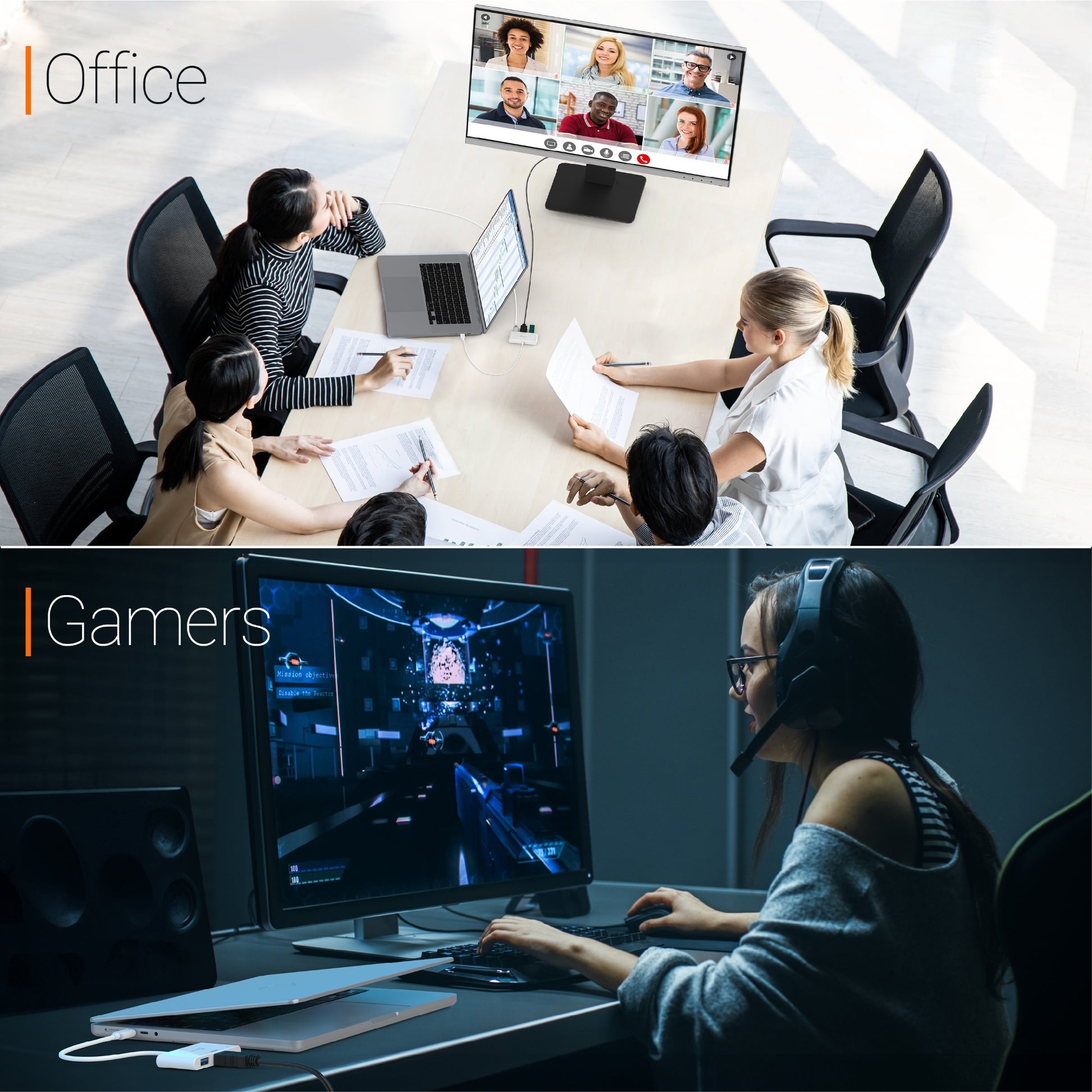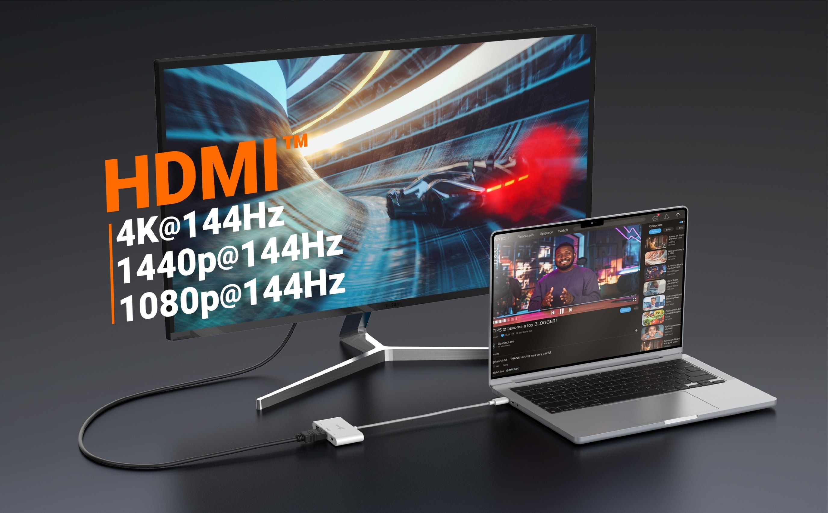 Поєднує в собі 4K144 HDMI™, USB™ Type-A та PD-зарядку. 3 порти працюють одночасно.