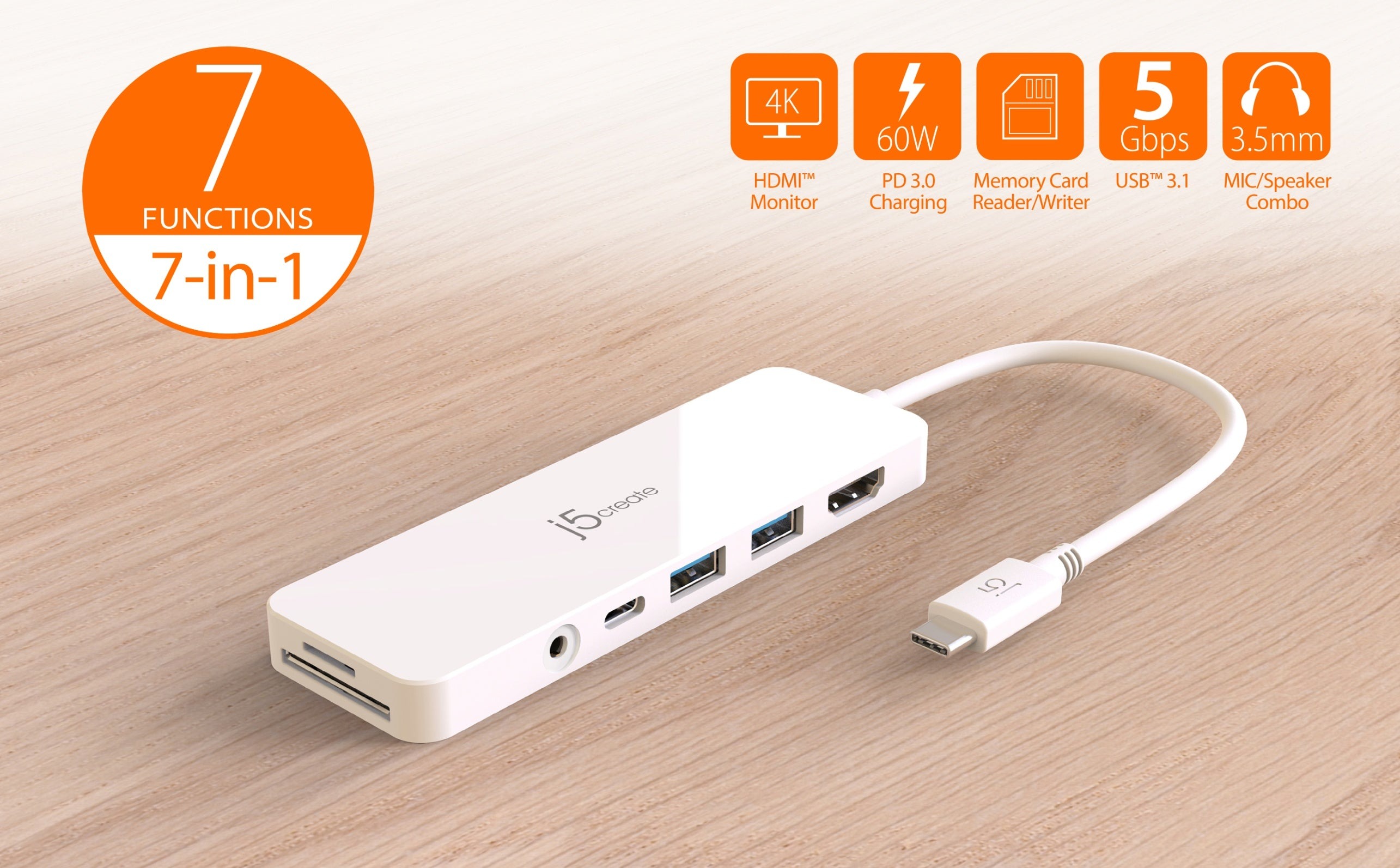 - 1 - Багатопортовий концентратор JCD373 USB-C® з функцією Power Delivery