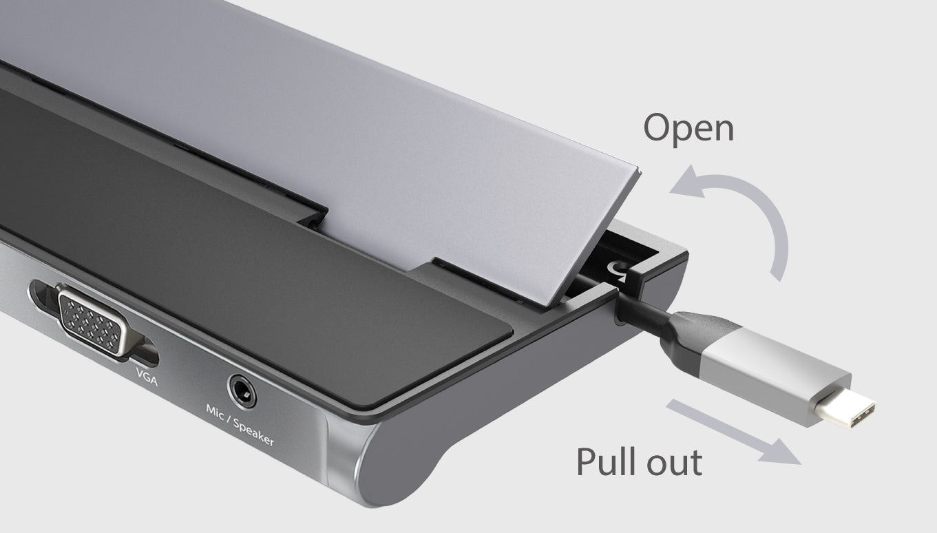 Ця док-станція дозволяє підключити додаткові периферійні пристрої USB™ 3.1/SD™/microSD™, монітори HDMI™/DisplayPort™/VGA та Gigabit Ethernet через порт USB™. Один із портів USB™ Type-A підтримує швидку зарядку BC1.2 для смартфонів, планшетів або iPad®. Порт USB-C™ підтримує Power Delivery 3.0, що дозволяє заряджати ноутбук або смартфон під час використання адаптера.