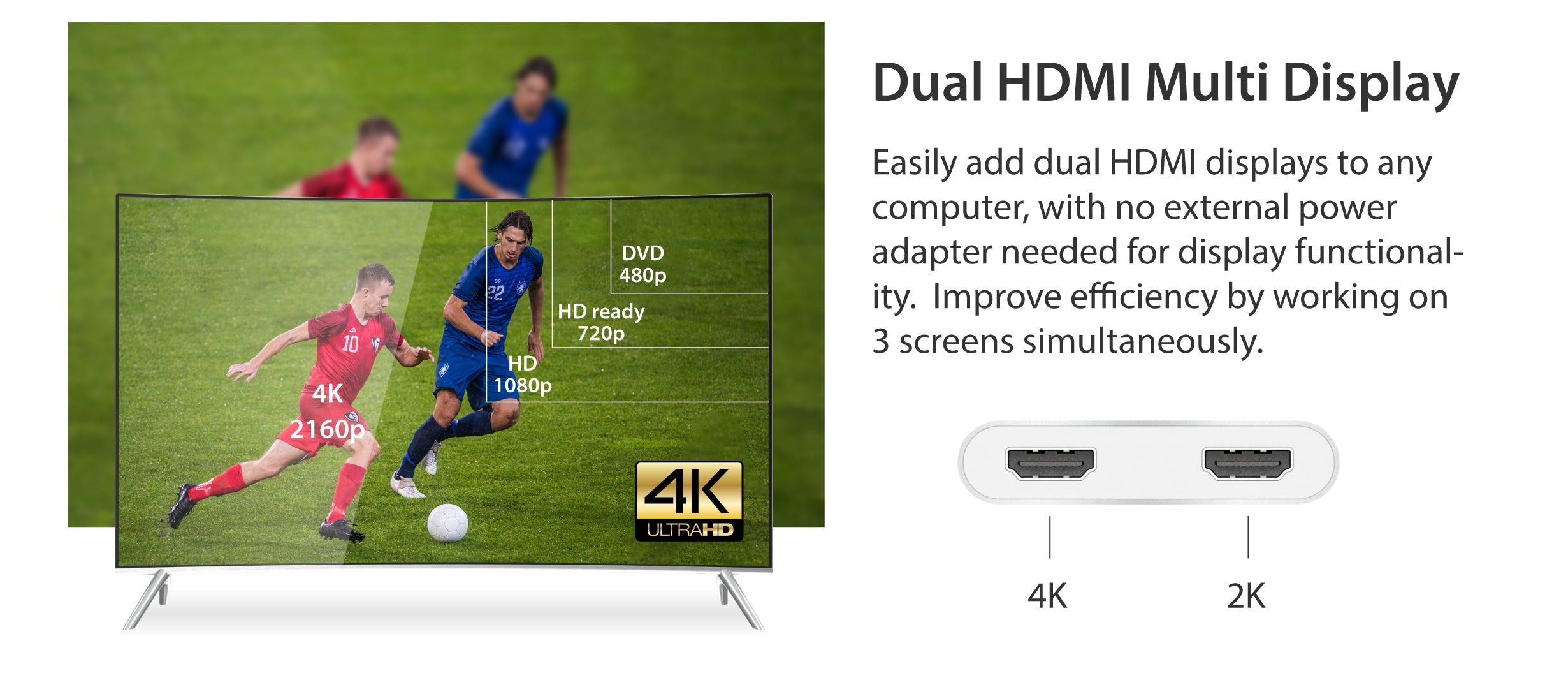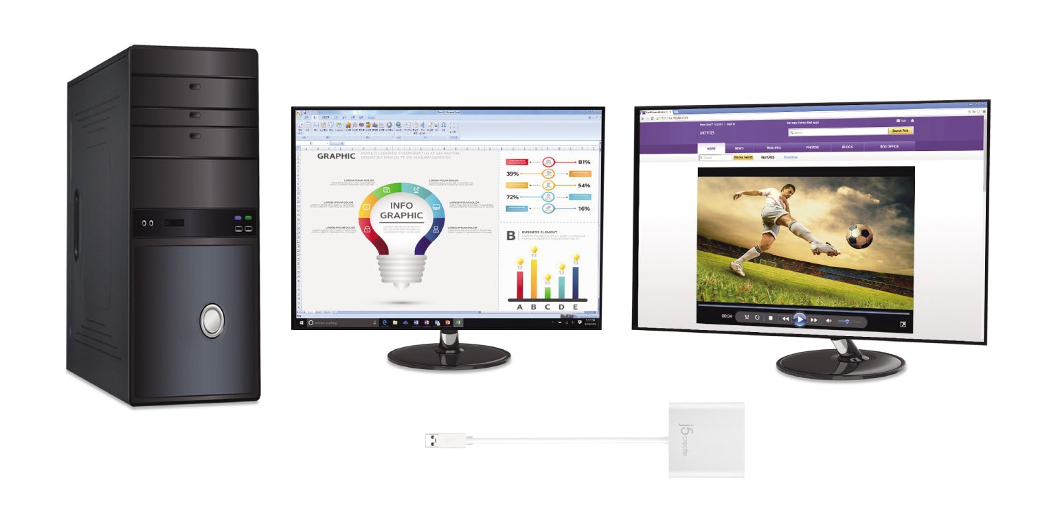 - Легко додайте два відеовиходи HDMI™ через один порт USB™ типу A.
