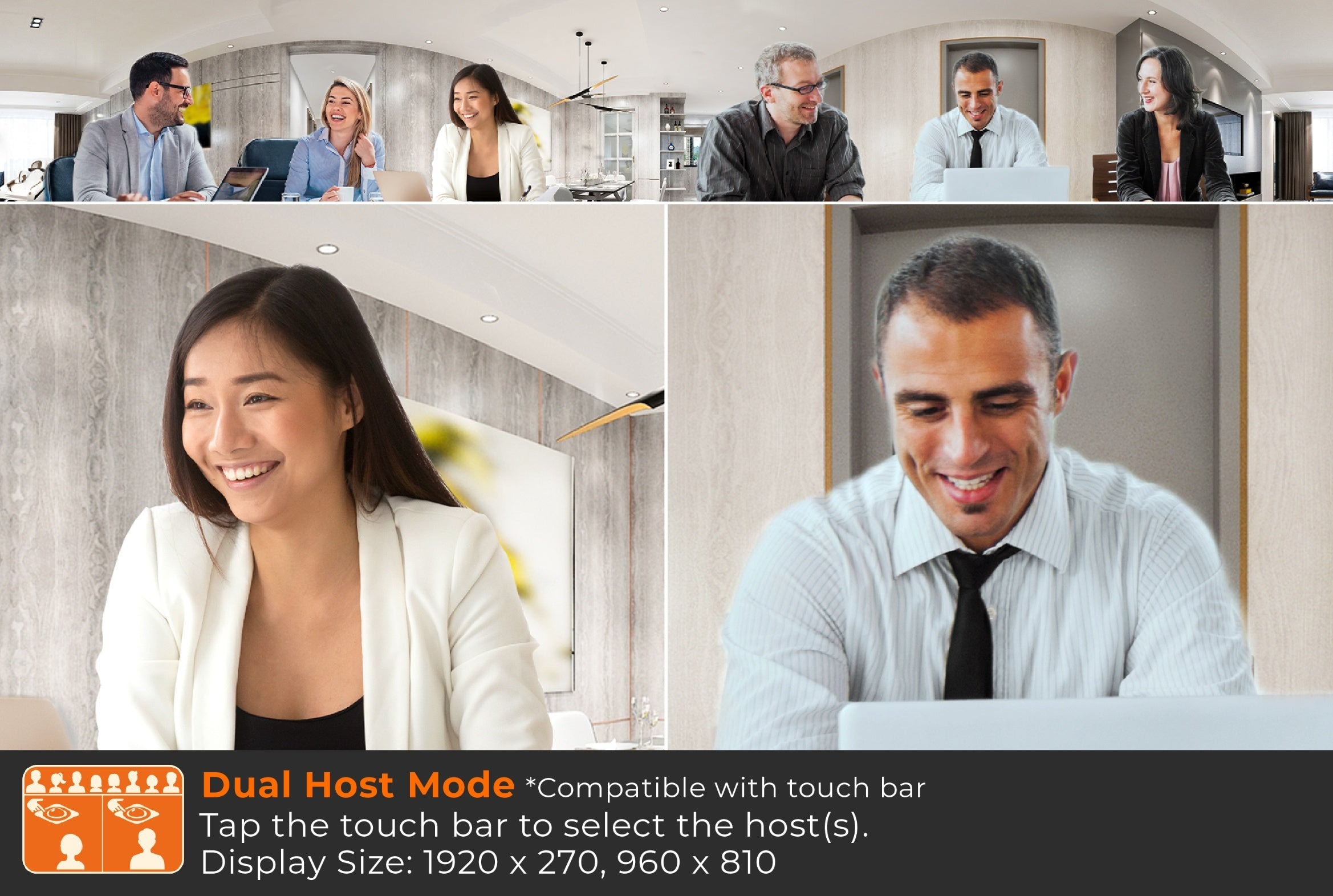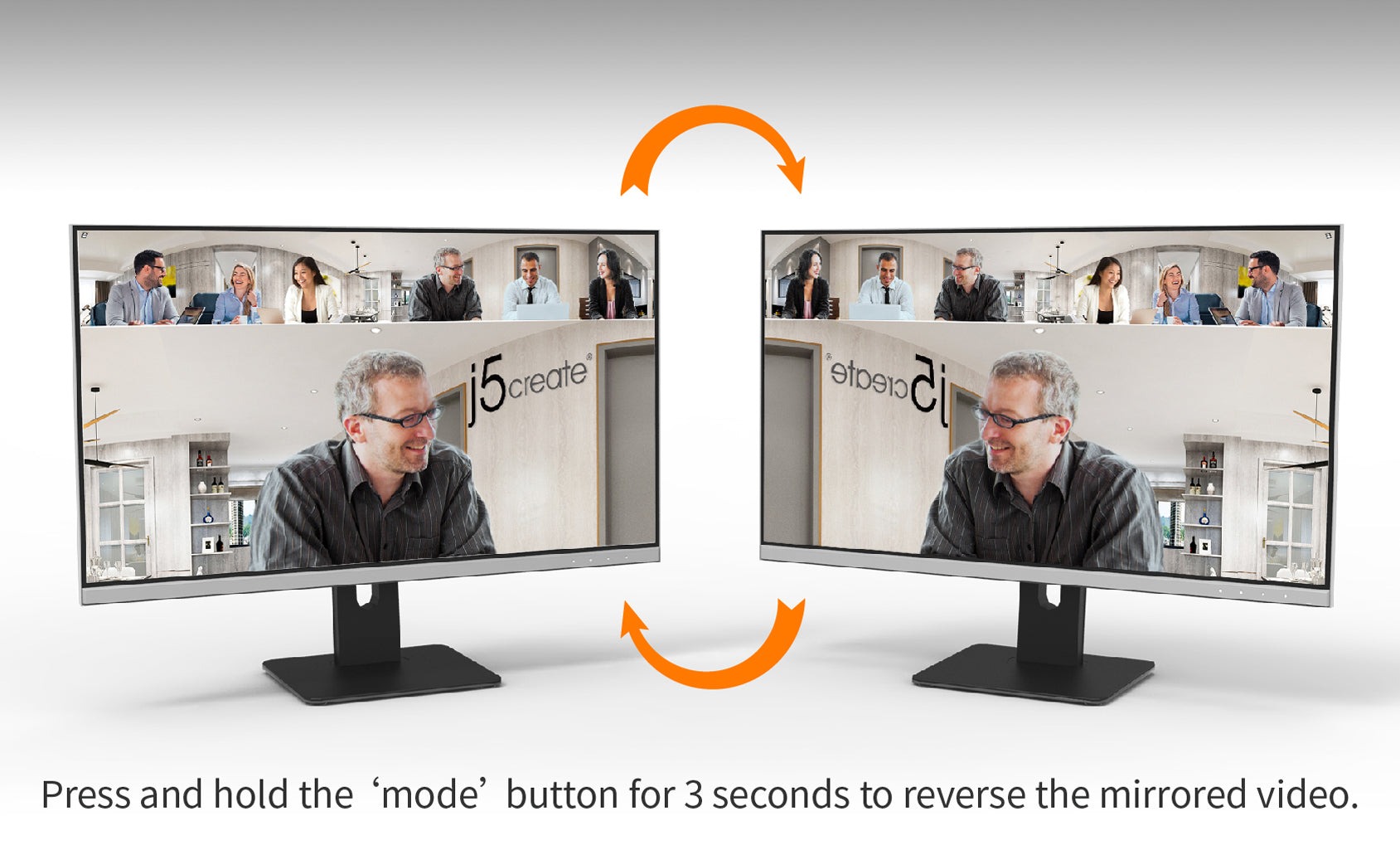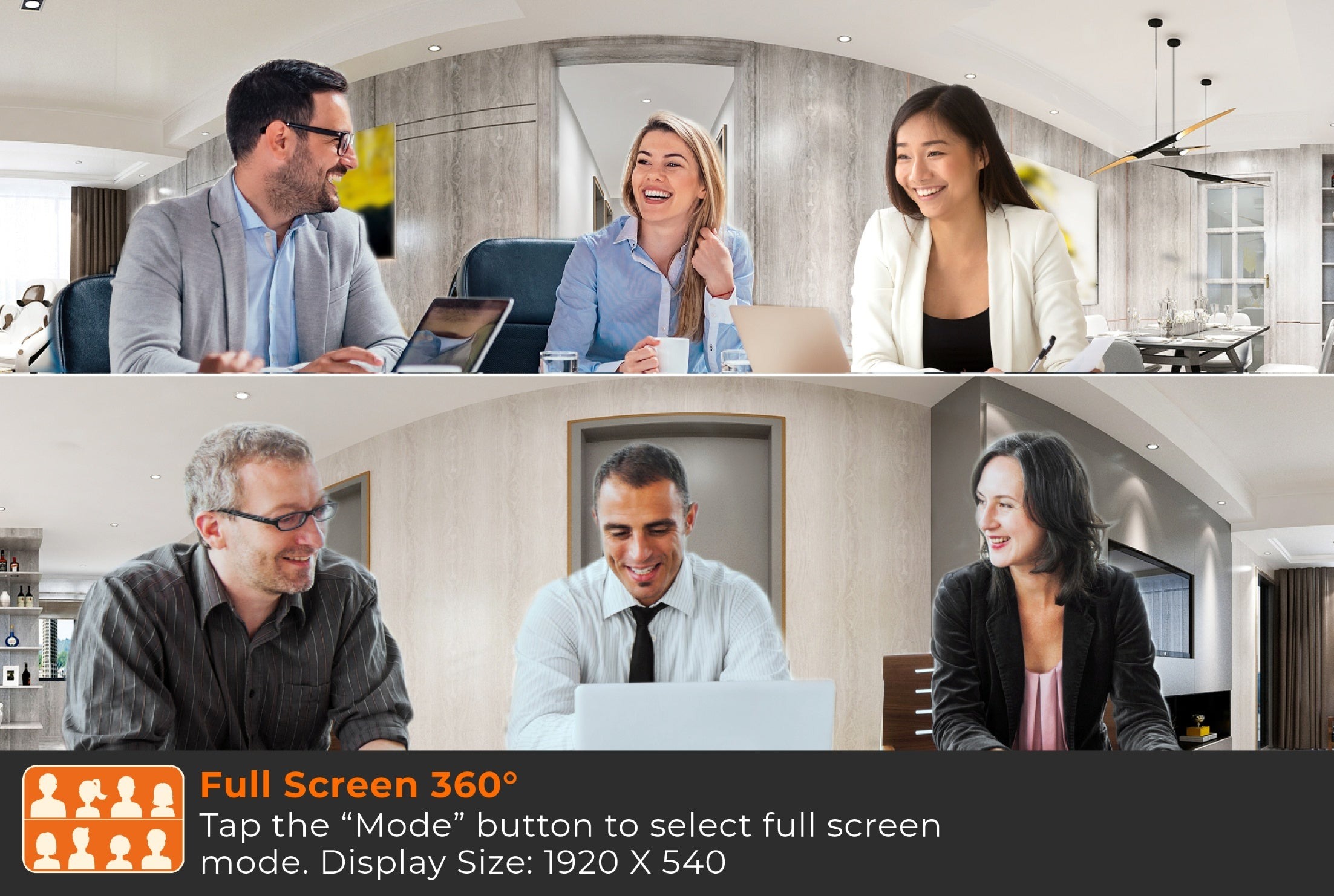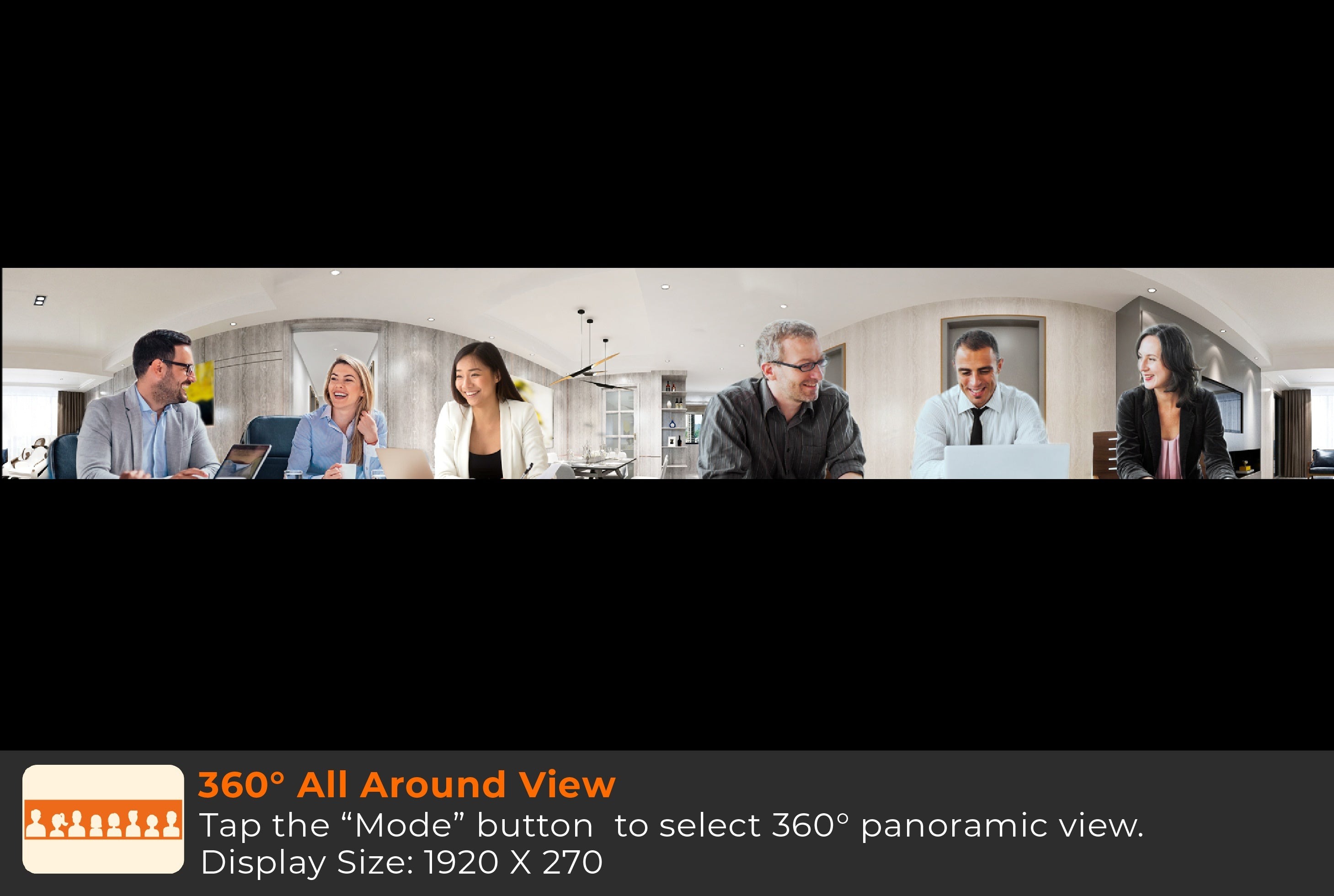 Додатково до широкого поля зору, яке забезпечує ультраширококутний об'єктив, універсальні режими відображення забезпечують гнучке та ефективне рішення для віртуальних зустрічей, будь то дистанційні конференції, онлайн-заняття, заходи з дотриманням соціальної дистанції або особисті зустрічі. Натисніть на стрілки, щоб переглянути функції JVCU360