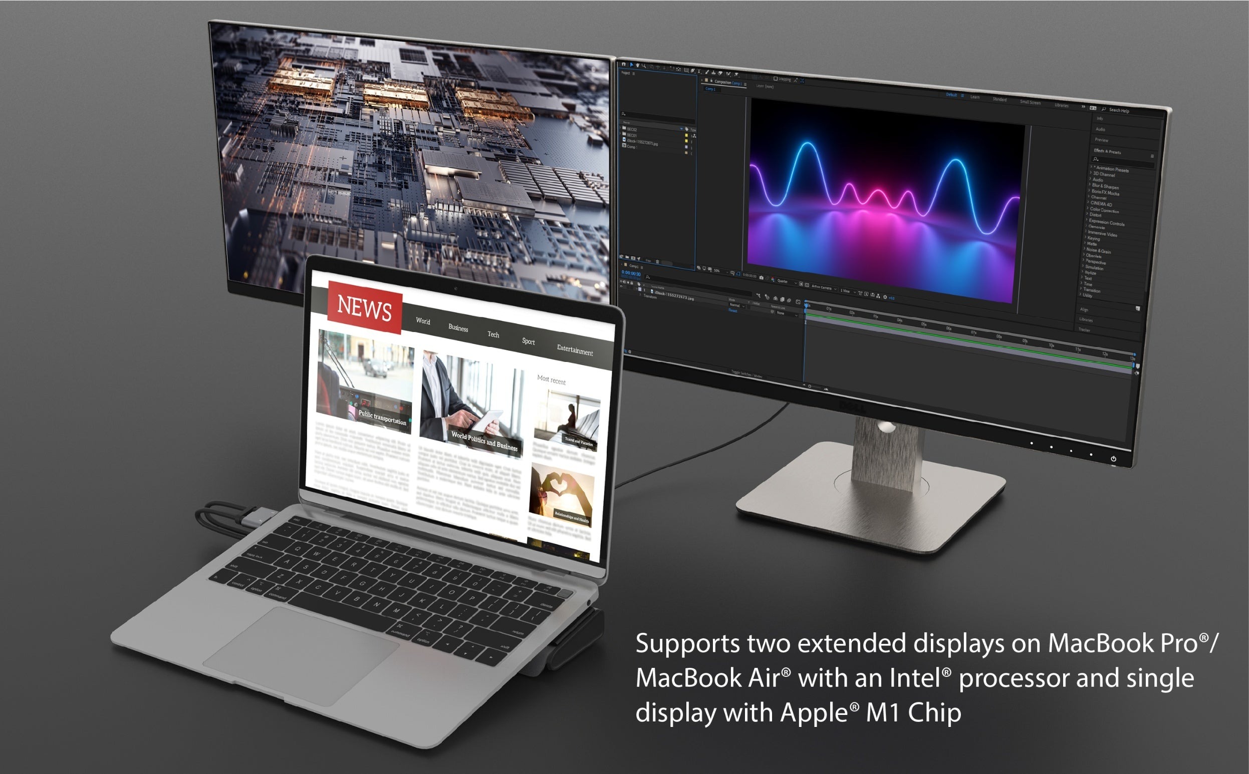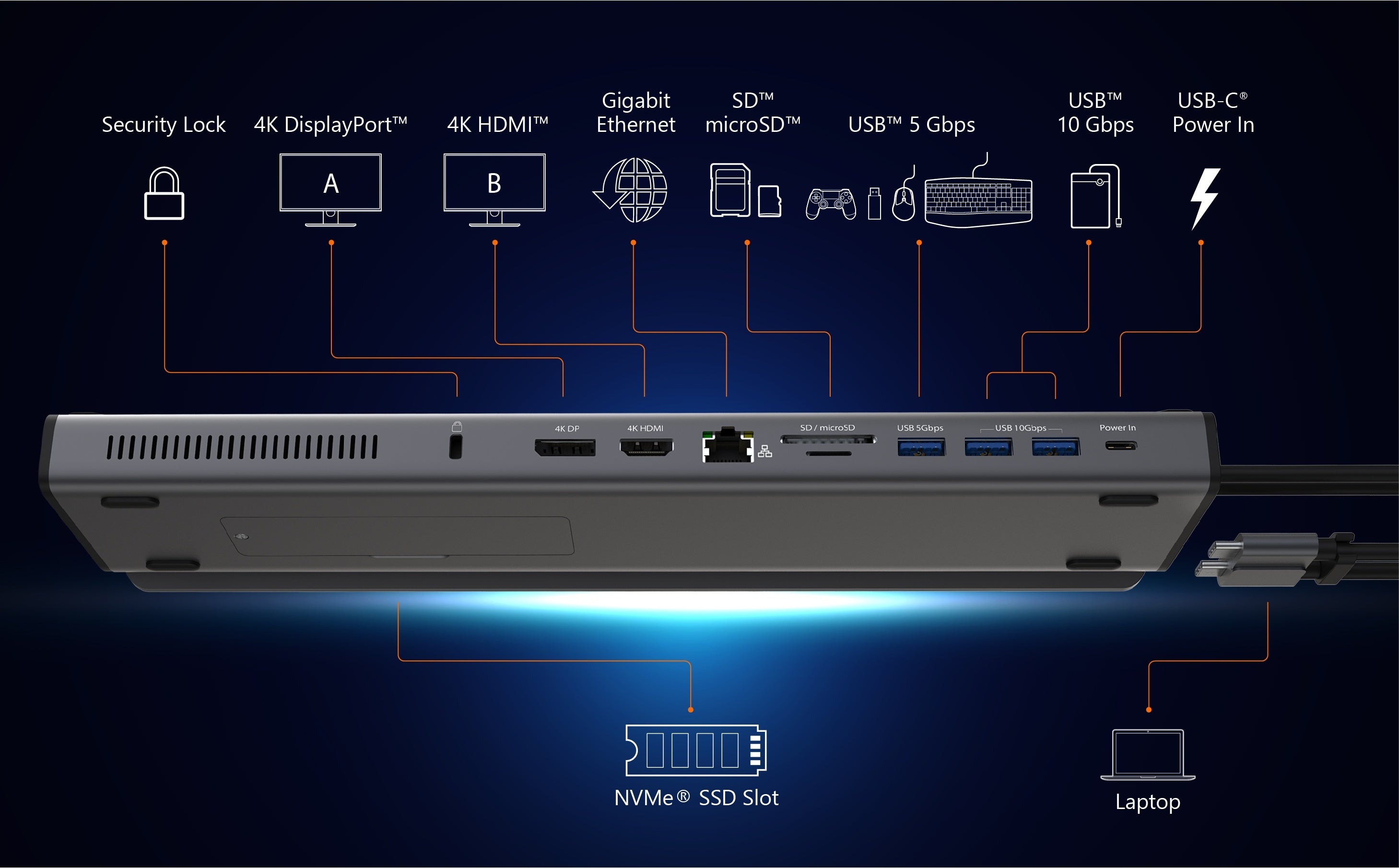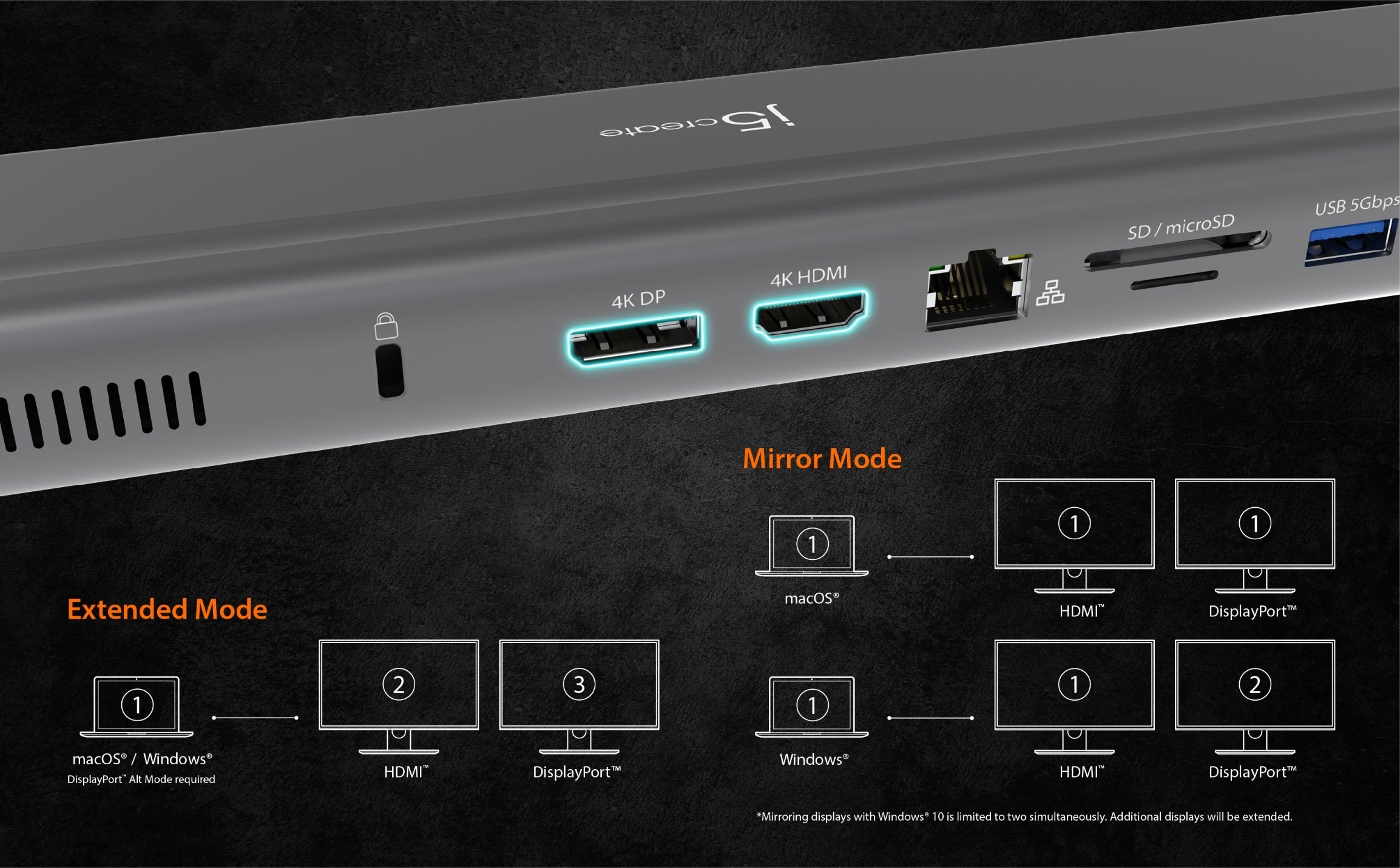 - Підтримує розширені подвійні дисплеї 4K (HDMI™ і DisplayPort™) на Intel® MacBook Pro® і MacBook Air®;